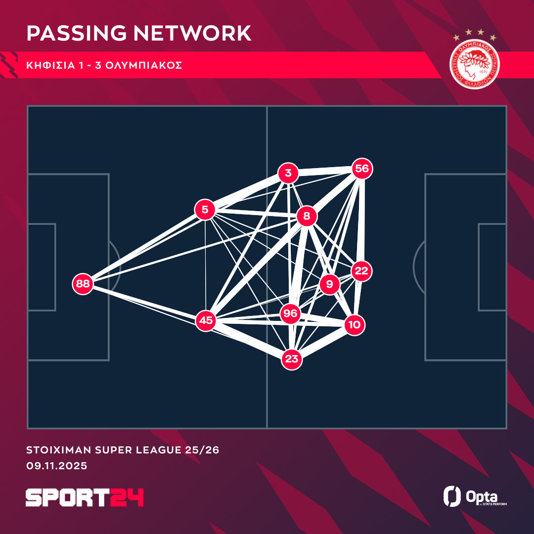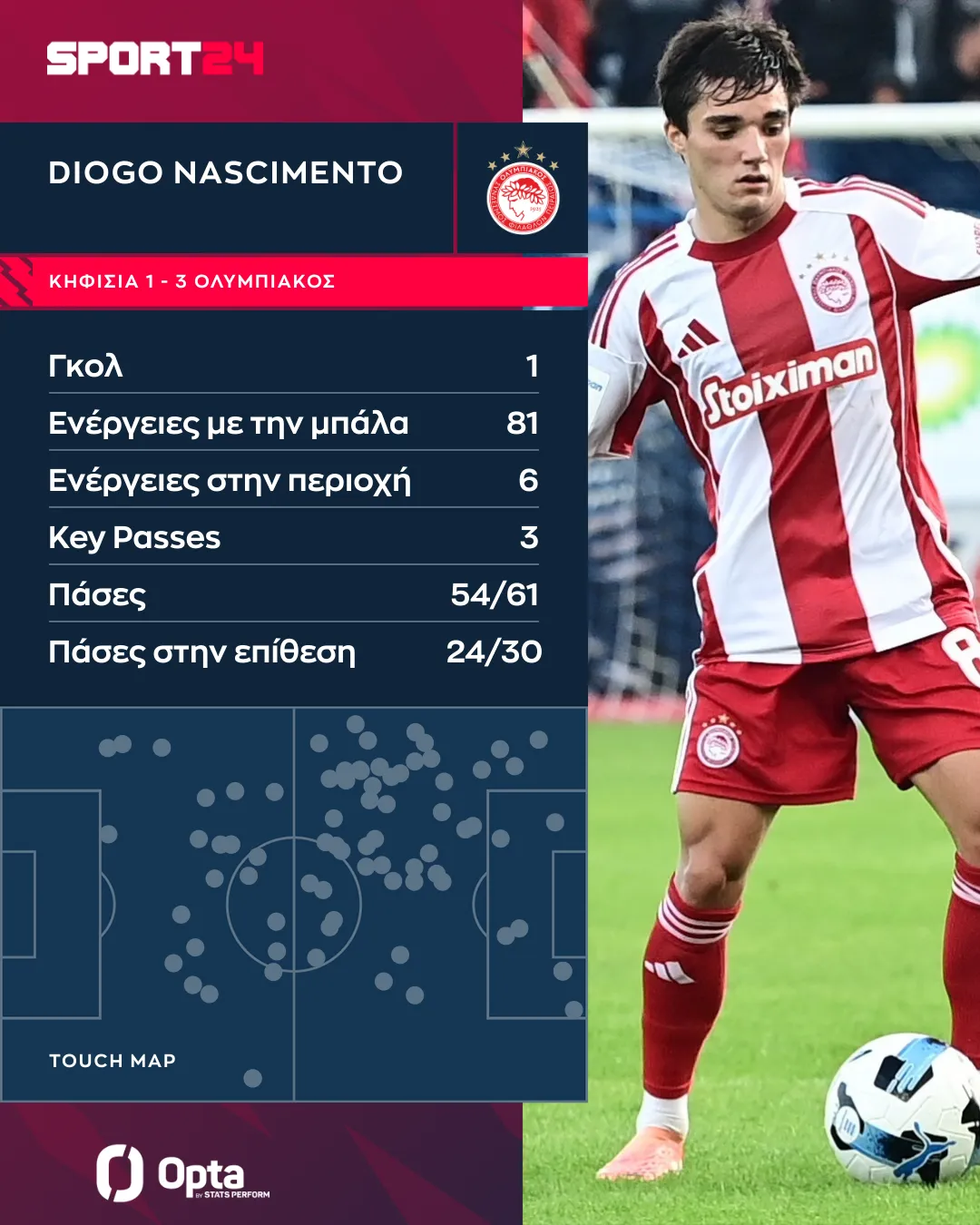 Οι επιδόσεις του Νασιμέντο αποδεικνύουν πόσο επιδραστικός ήταν στο παιχνίδι των ερυθρόλευκων. Φυσικά, οι αριθμοί του μεγάλωσαν ακόμη περισσότερο, όταν η Κηφισιά έμεινε με δέκα παίκτες, με τα πράγματα να απλοποιούνται για τους Πειραιώτες.