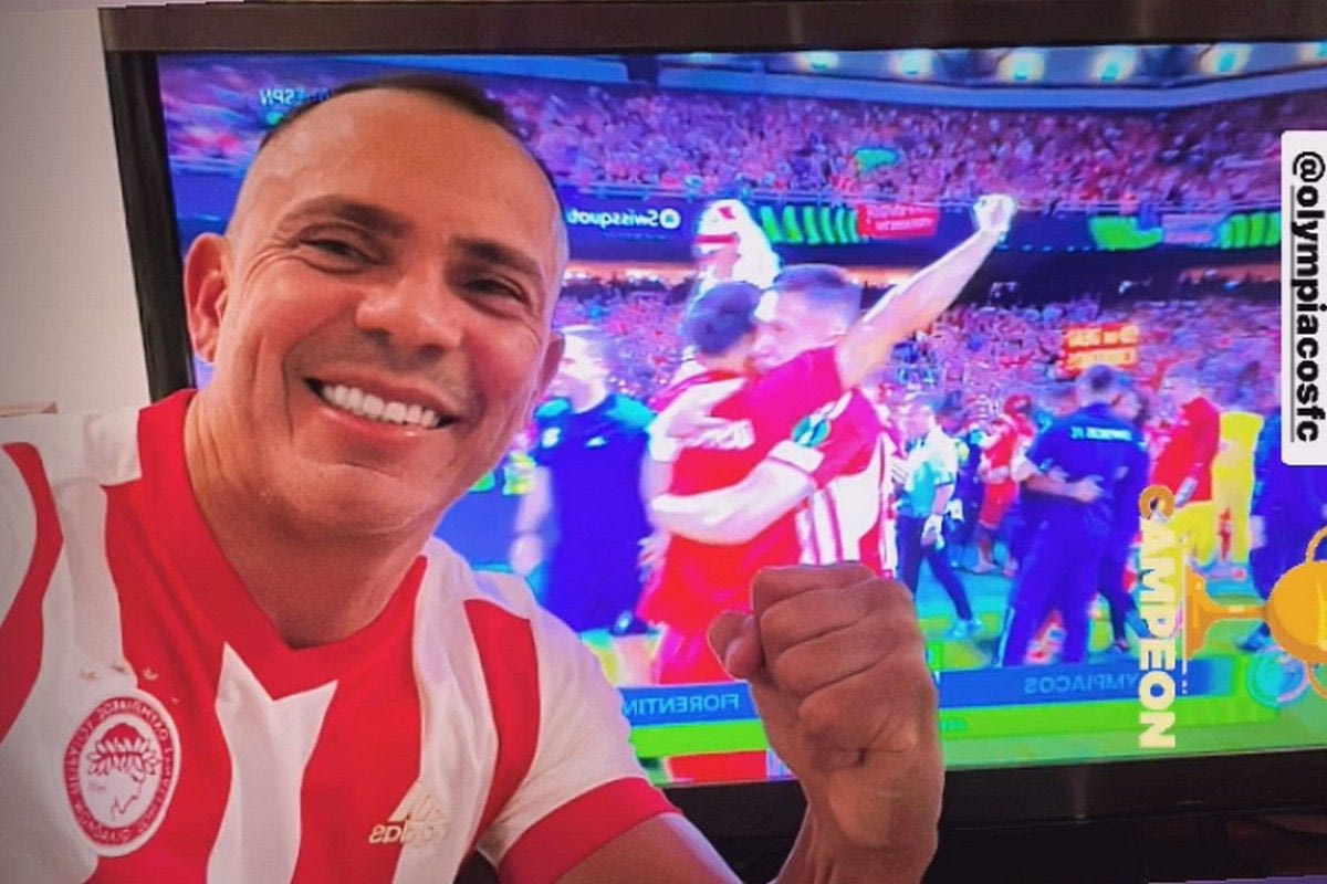Ο Βραζιλιάνος παλαίμαχος άσος έγραψε μαγικές στιγμές δόξας με τους Πειραιώτες στα έξι χρόνια που αγωνίστηκε και αυτούς και λατρεύτηκε όσο λίγοι, με τον ίδιο να πανηγυρίζει έντονα την κατάκτηση του τροπαίου και να ανεβάζει πανηγυρική φωτογραφία όπου ποζάρει με την ερυθρόλευκη φανέλα με φόντο πανηγυρικά στιγμιότυπα στην τηλεόραση του σπιτιού του.