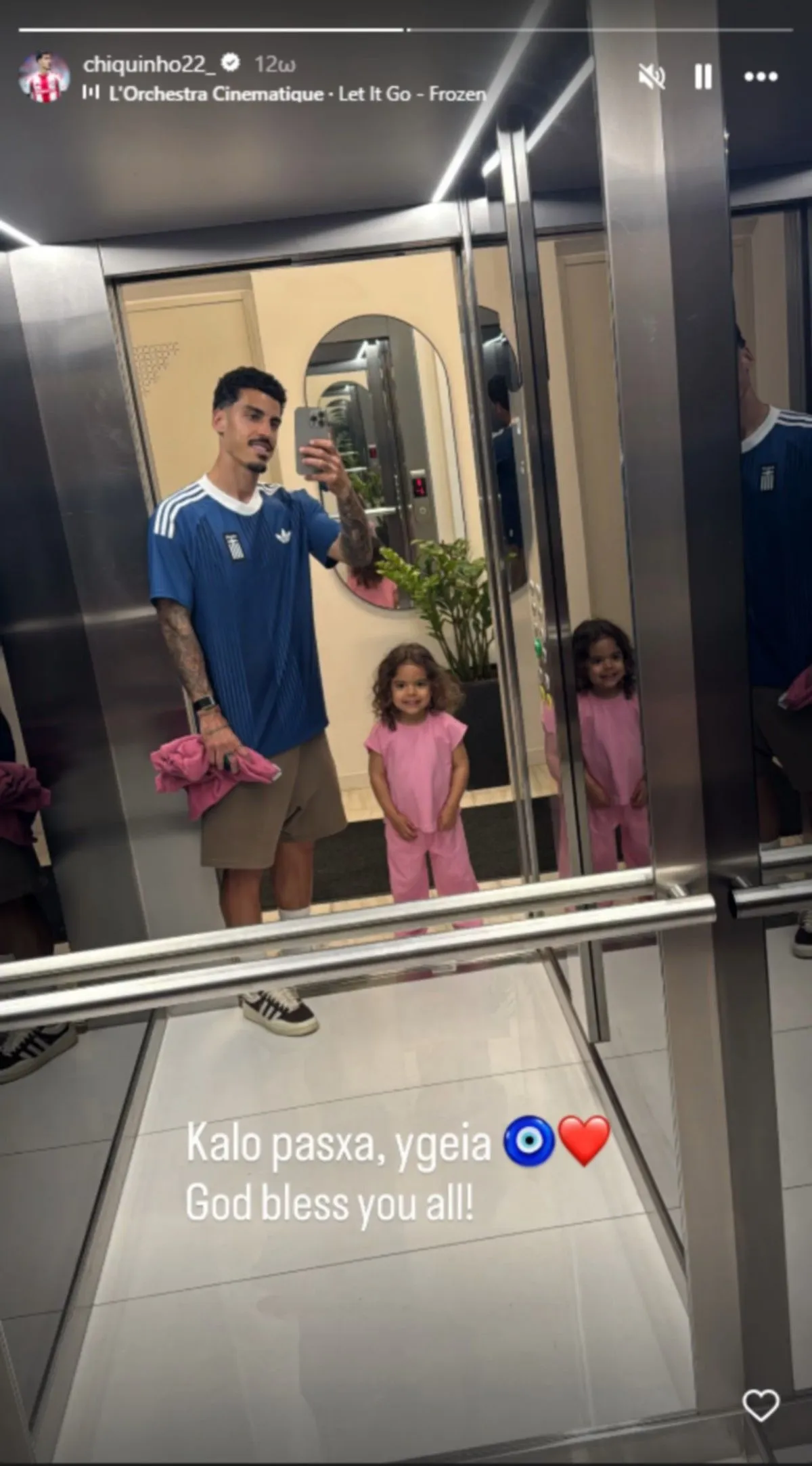 Ο Τσικίνιο έχει δεθεί με τη χώρα μας μέσω της παρουσίας του στον Ολυμπιακό τα τελευταία χρόνια και θέλησε να το δείξει με ανάρτησή του στο Instagram, όπου φόρεσε τη φανέλα της Εθνικής και έδωσε ευχές στους Έλληνες για τις ημέρες του Πάσχα.