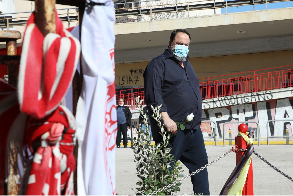 Από τη στιγμή που το ετήσιο μνημόσυνη δεν θα τελεστεί εφέτος, ο Βαγγέλης Μαρινάκης θέλησε να αποτίσει φόρο τιμής στους νεκρούς οπαδούς, αφήνοντας στο μνημείο που υπάρχει δίπλα από το γήπεδο ένα λευκό τριαντάφυλλο.