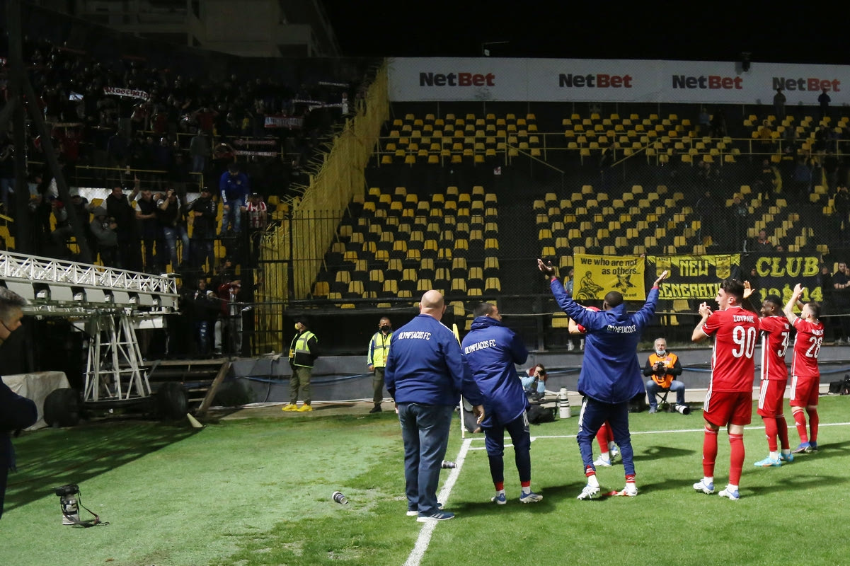 Ο Ολυμπιακός πέρασε από το Κλεάνθης Βικελίδης, επικρατώντας του Άρη με 1-0. Οι παίκτες του Πέδρο Μαρτίνς στο φινάλε του αγώνα πανηγύρισαν με τον κόσμο που βρέθηκε στη Θεσσαλονίκη για να παρακολουθήσει από κοντά τον αγώνα με τον Άρη.