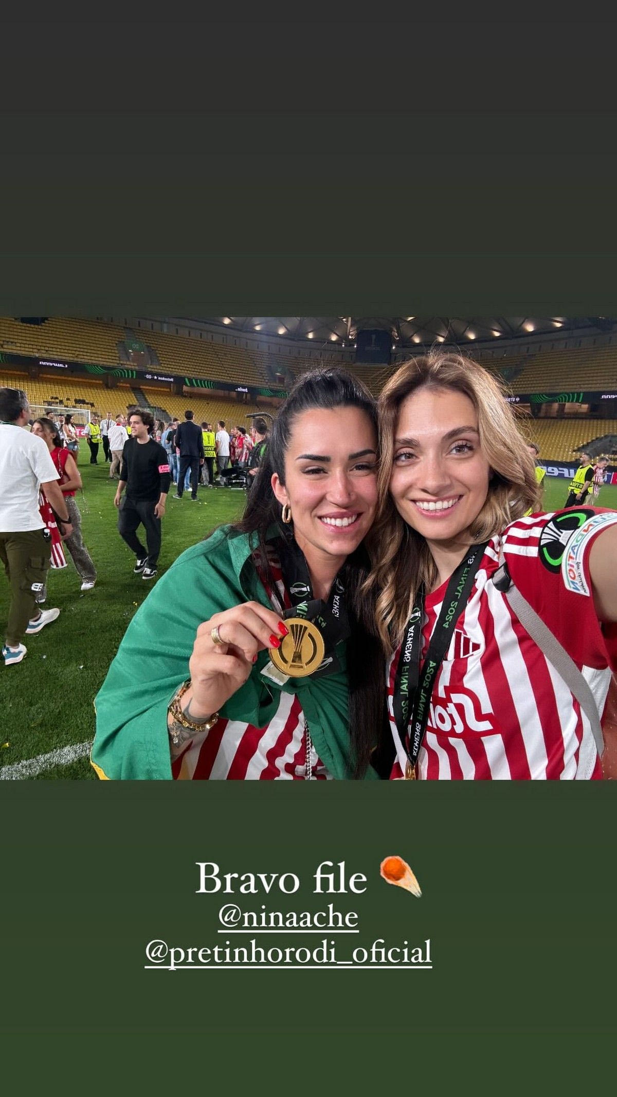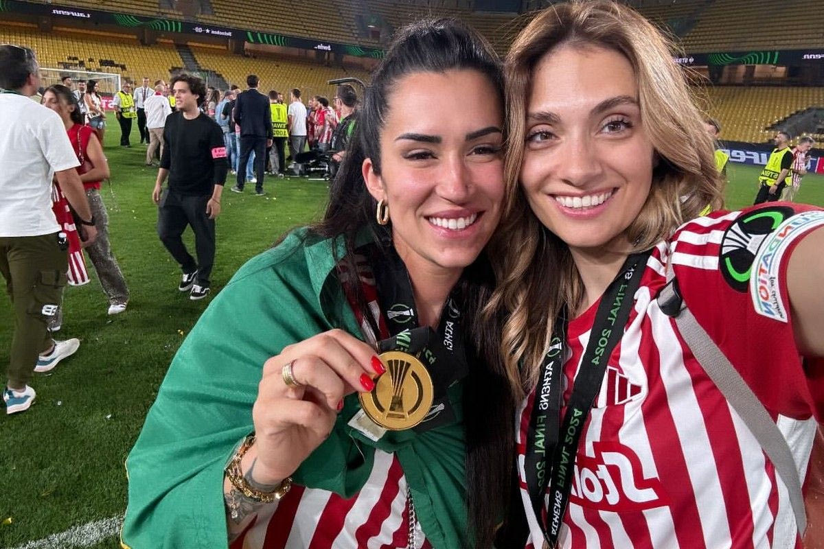 Οι αγαπημένες του Κώστα Φορτούνη και του Ροντινέι "εισέβαλλαν" στον αγωνιστικό χώρο μετά τη λήξη του αγώνα του Ολυμπιακού κόντρα στην Φιορεντίνα (1-0) και πανηγύρισαν ξέφρενα την κατάκτηση του Conference League.