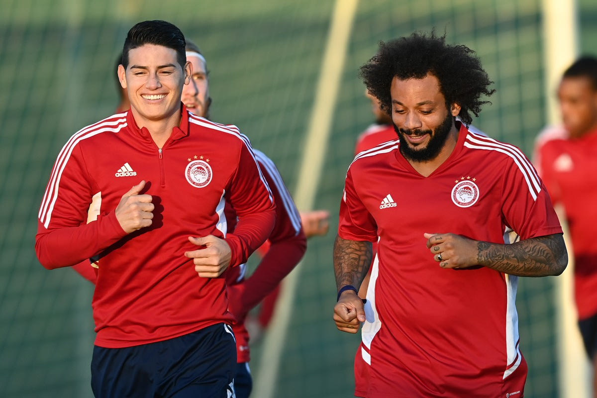Οι παίκτες του Ολυμπιακού βρέθηκαν στο προπονητικό κέντρο στον Ρέντη με τον Μαρσέλο και τον Χάμες Ροντρίγκες να στέλνουν τις ευχές τους μέσα από τα social media.