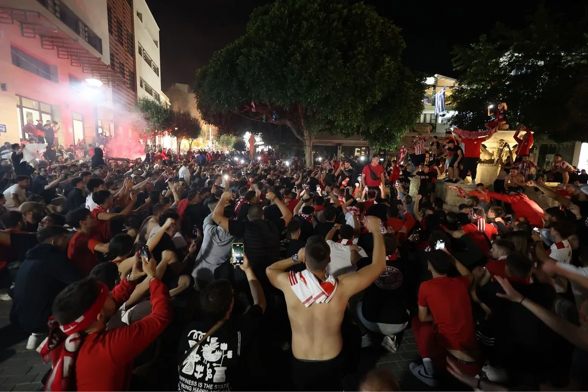 Όλη η Ελλάδα βρίσκεται στο πόδι για χάρη του Ολυμπιακού, προκειμένου να πανηγυρίσουν οι "ερυθρόλευκοι" φίλαθλοι την κατάκτηση του Conference League.