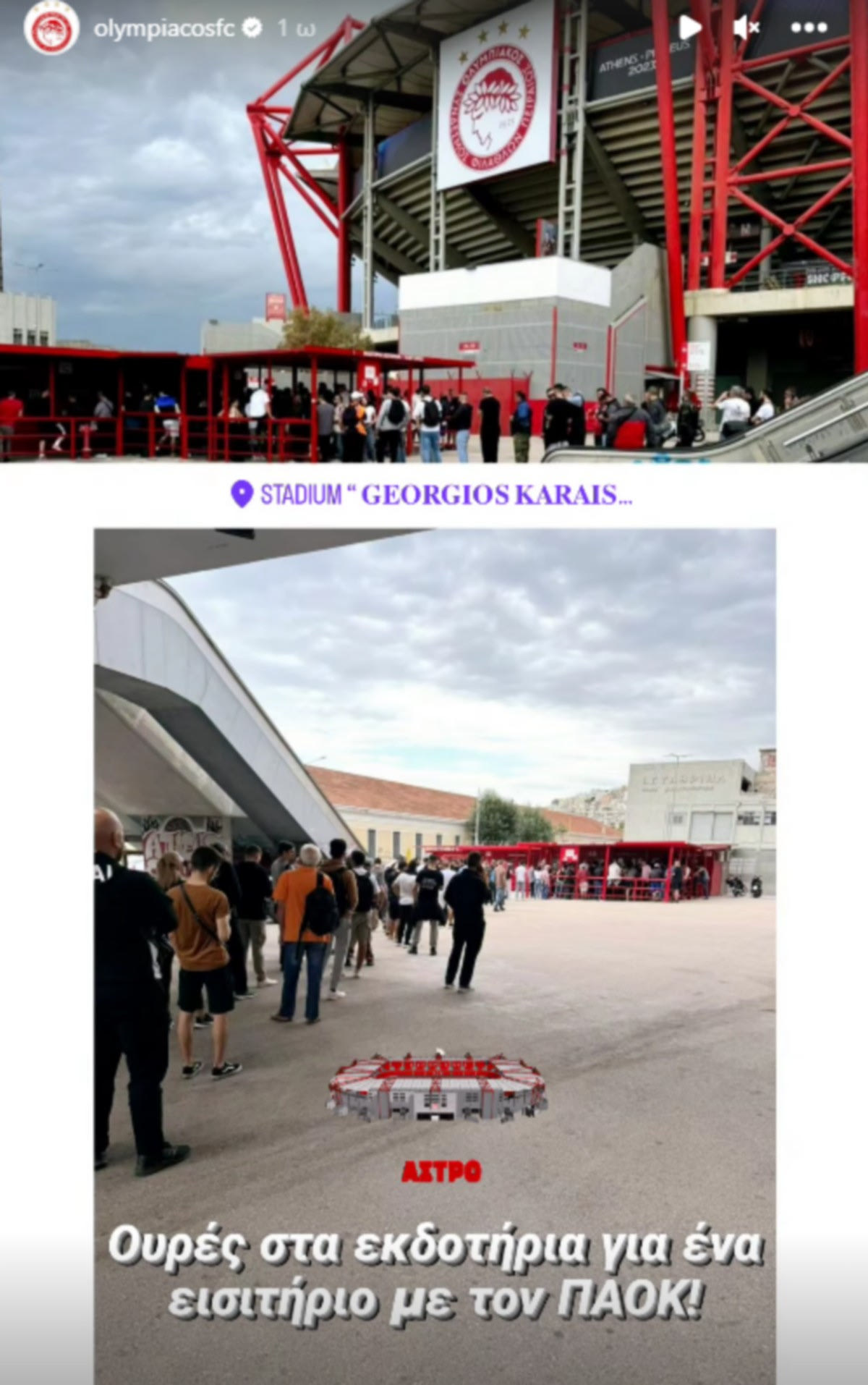 Οι οπαδοί του Ολυμπιακού δημιούργησαν ουρές στα εκδοτήρια στο Γεώργιος Καραϊσκάκης για το ντέρμπι των ερυθρόλευκων κόντρα στον ΠΑΟΚ (5/11, 19:30, COSMOTE SPORT 1HD, LIVE SPORT24).