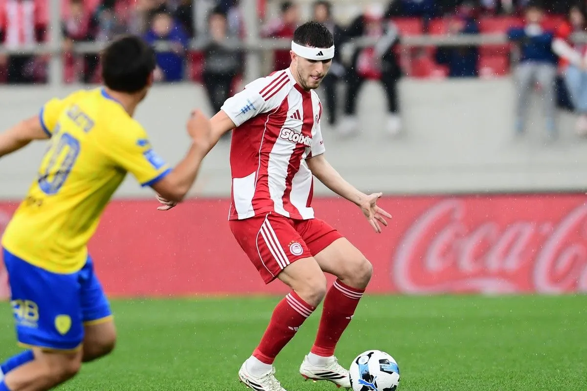 Ο αμυντικός του Ολυμπιακού μάλιστα φόρεσε περιμετώπιο, προκειμένου να καλύπτει το τραύμα του. Πάντως, ο τραυματισμός του δεν ήταν ικανός να τον αφήσει εκτός.