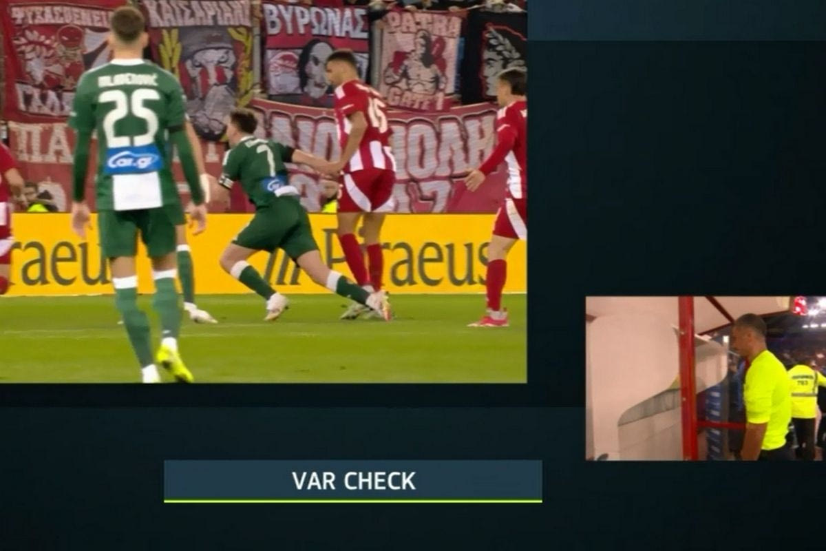 Ο Ιωαννίδης έπεσε στην περιοχή με το VAR να καλεί τον Βίντσιτς να το δει. Ο διαιτητής αφού ήλεγξε τη φάση σφύριξε πέναλτι για πάτημα του Κάρμο.