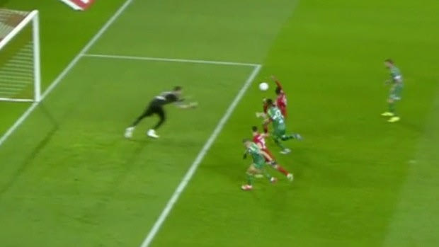 Ο Χασάν σκοράρει το δεύτερο γκολ του Ολυμπιακού κόντρα στον Παναθηναϊκό
