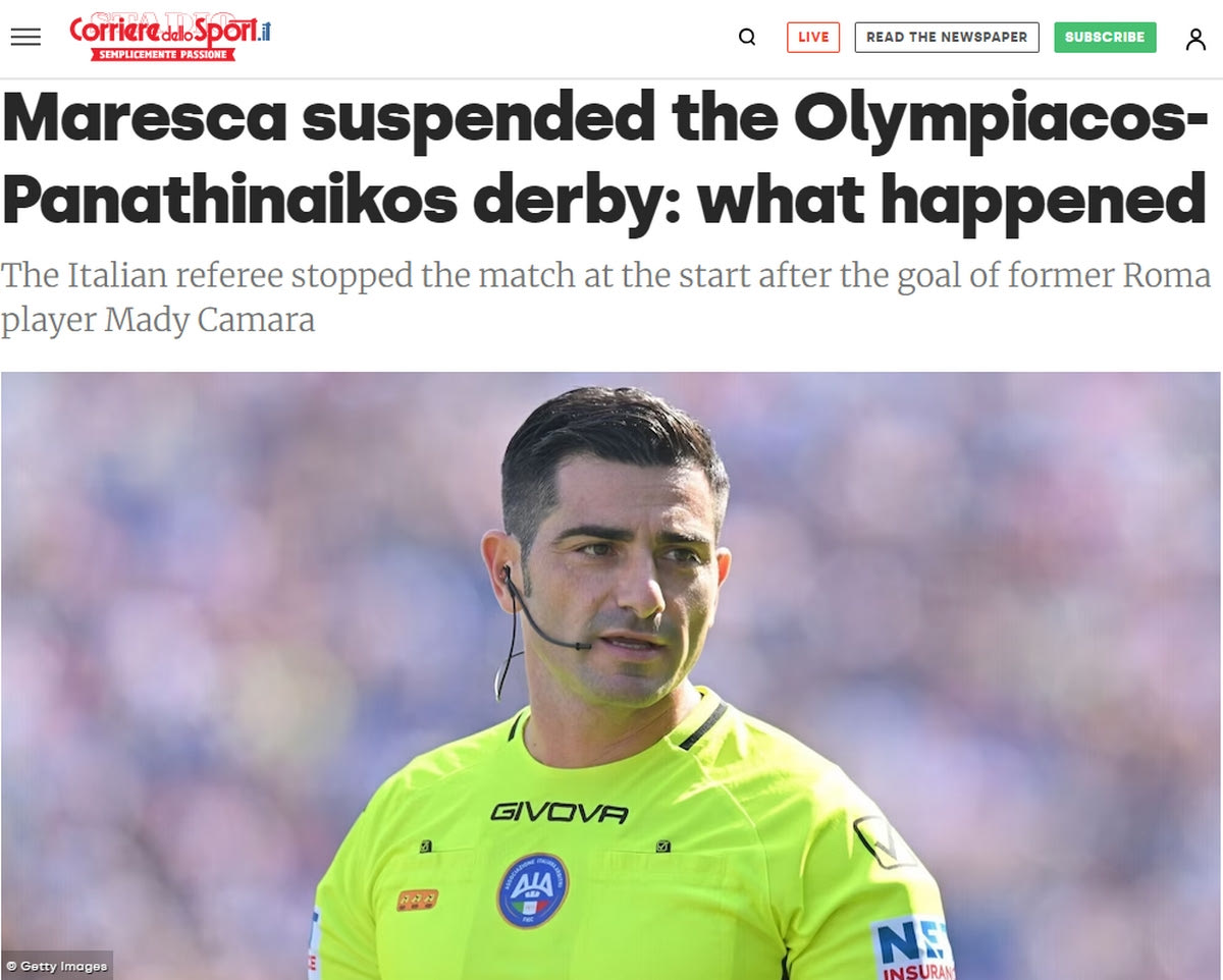 - Corriere dello Sport: “Ο Μαρέσκα διέκοψε το ντέρμπι Ολυμπιακός-Παναθηναϊκός: τι έγινε”