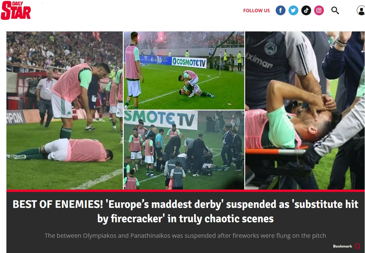 - Daily Star: “Το πιο τρελό ντέρμπι της Ευρώπης διακόπηκε καθώς αναπληρωματικός χτυπήθηκε από κροτίδα σε πραγματικά χαοτικές σκηνές”