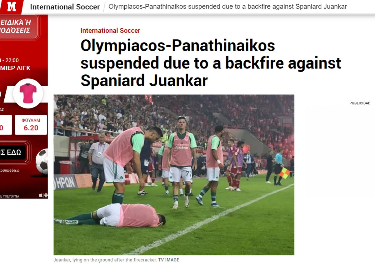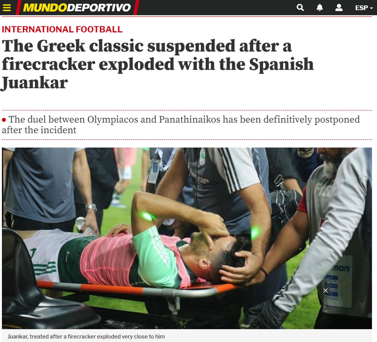 - Mundo Deportivo: “Το ελληνικό classico διακόπηκε μετά από έκρηξη κροτίδας στον Ισπανό Χουανκάρ”
