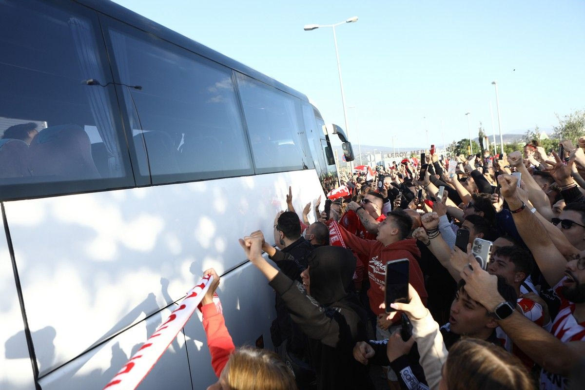 Οι οπαδοί του Ολυμπιακού πήγαν στο αεροδρόμιο μετά την νίκη επί της Άστον Βίλα για να αποθεώσουν τους παίκτες των "ερυθρόλευκων"