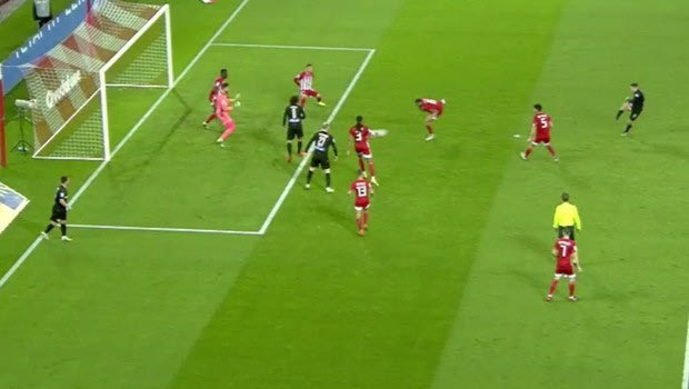 Ο Έλληνας διεθνής μεσοεπιθετικός έκανε το σουτ με το δεξί εντός περιοχής με τον Ζοζέ Σα να απομακρύνει με το πόδι, όπως είχε κάνει και στο τέταρτο λεπτό κόντρα στον Μίχαελ Κρμέντσικ.