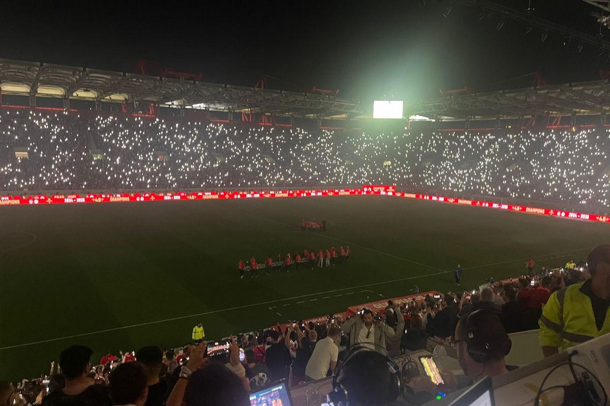 Το “Γεώργιος Καραϊσκάκης” φόρεσε τα γιορτινά του για τη φιέστα του 48ου πρωταθλήματος του Ολυμπιακού. Η ομάδα του Μεντιλίμπαρ υποδέχθηκε τον ΠΑΟΚ για την 5η αγωνιστική των playoffs της Stoiximan Super League και μόλις νύχτωσε, οι 35.000 χιλιάδες οπαδοί των ερυθρολεύκων χρησιμοποίσαν τα φωτορυθμικά βραχιολάκια που τους μοίρασε η ΠΑΕ για να δημιουργήσουν μαγικές εικόνες.