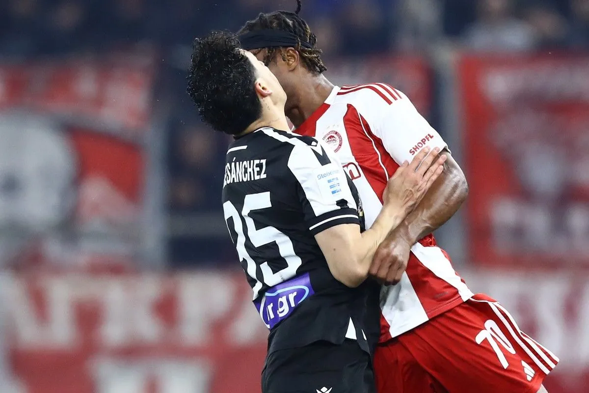Ολυμπιακός – ΠΑΟΚ: Σφοδρή σύγκρουση Μπρούνο – Σάντσες, τοποθετήθηκε επίδεσμος στο κεφάλι του Μεξικανού