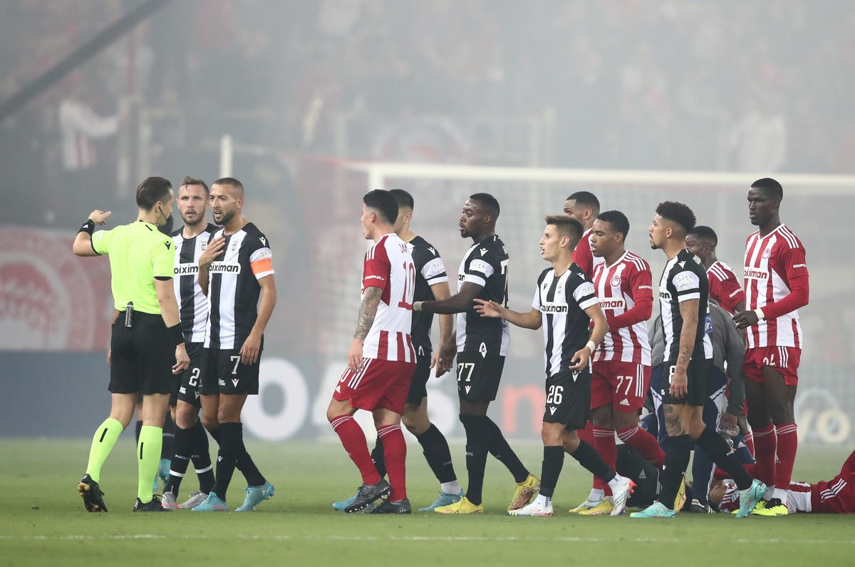 Με το σκορ στο 1-2 υπέρ του ΠΑΟΚ, το ντέρμπι του Γεώργιος Καραϊσκάκης διακόπηκε για μερικά λεπτά όταν ο διαιτητής πήγε στο μόνιτορ για να εξετάσει το πέναλτι που έδωσε στο 62′ υπέρ της ομάδας της Θεσσαλονίκης.