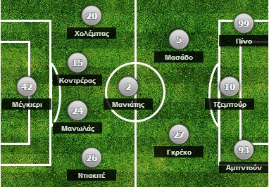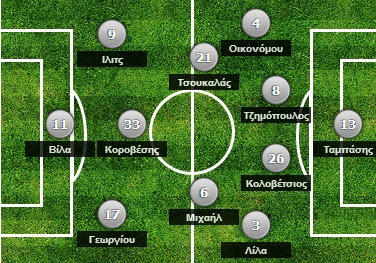 Από την άλλη πλευρά, ο Γιάννης Χριστόπουλος δεν μπορούσε να υπολογίζει στους τιμωρημένους Ντε Βινσέντι, Κεϊτά, Πάντο και Φεγκρούς, ενώ δεν άλλαξε το αγαπημένο του 4-2-3-1. Δείτε αναλυτικά πως παρατάχθηκαν οι δύο ομάδες: