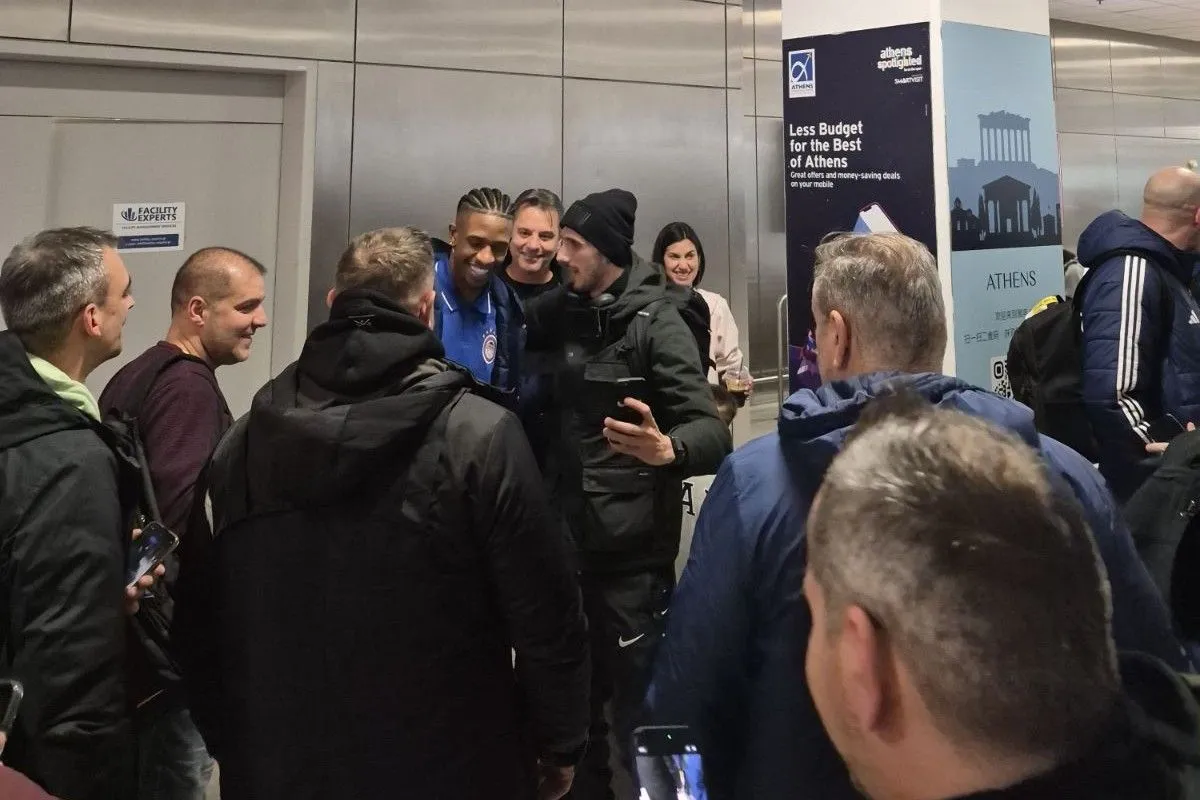 Ο Αντρέ Λουίζ περικυκλώθηκε από φίλους του Ολυμπιακού κατά την άφιξη της ομάδας στο “Ελ. Βενιζέλος”, βγάζοντας φωτογραφίες και υπογράφοντας αυτόγραφα.