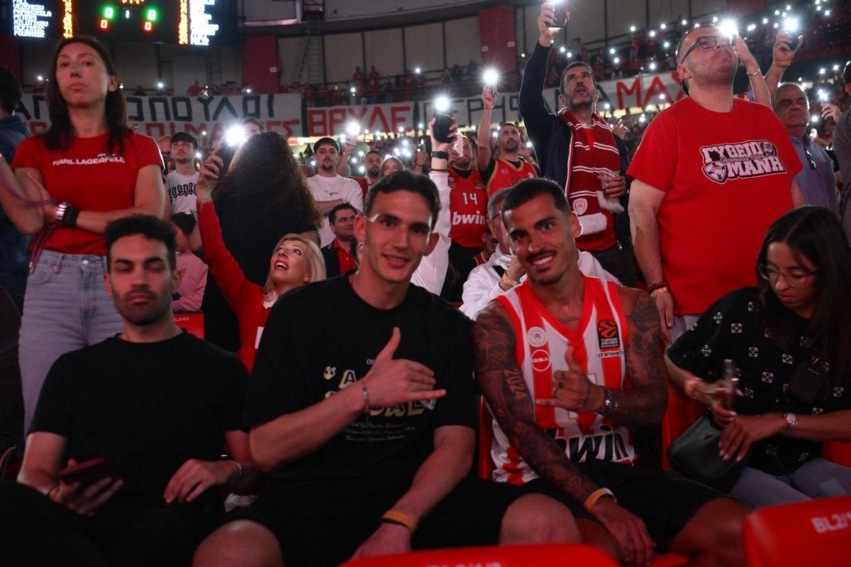 Ισχυρή εκπροσώπηση είχε για ακόμη μια φορά ο ποδοσφαιρικός Ολυμπιακός στο ΣΕΦ, με τέσσερις ποδοσφαιριστές των “ερυθρόλευκων” να δίνουν το “παρών” στο φαληρικό γήπεδο για να παρακολουθήσουν από κοντά το Game 2 με τη Ρεάλ για τα playoffs της EuroLeague.
