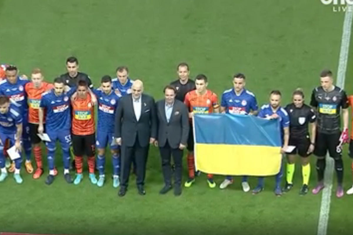 Tο φιλικό του Ολυμπιακού με την ουκρανική Σαχτάρ Ντόνετσκ στέλνει ένα ηχηρό μήνυμα κατά του πολέμου.