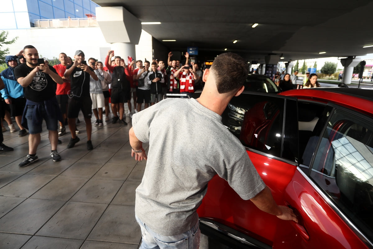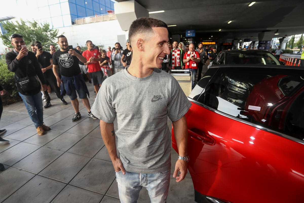 Στο “Ελ. Βενιζέλος” βρέθηκαν και φίλοι του Ολυμπιακού, οι οποίοι του επιφύλαξαν θερμή υποδοχή. Ο Πορτογάλος εξτρέμ (ύψος 1.65μ) έκανε την εμφάνισή του λίγο μετά τις 8 το πρωί και γνώρισε την αποθέωση από τους φίλους των ερυθρολεύκων.