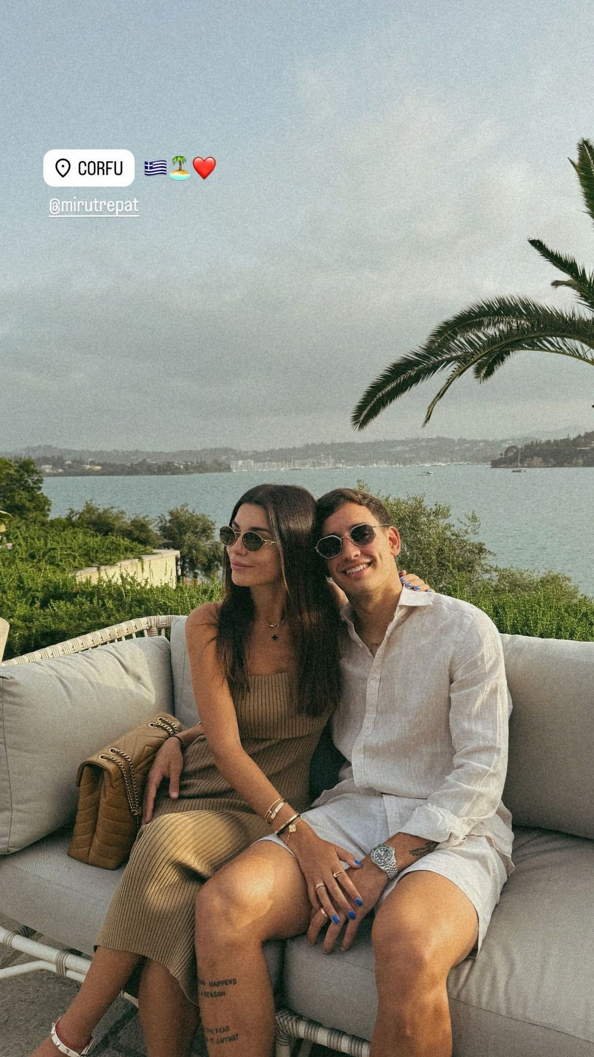 Το ερωτευμένο ζευγάρι απολαμβάνει μερικές στιγμές χαλάρωσης στη Κέρκυρα, μακριά από την Αθήνα και τις προπονήσεις του Αργεντινού μέσου του Ολυμπιακού.