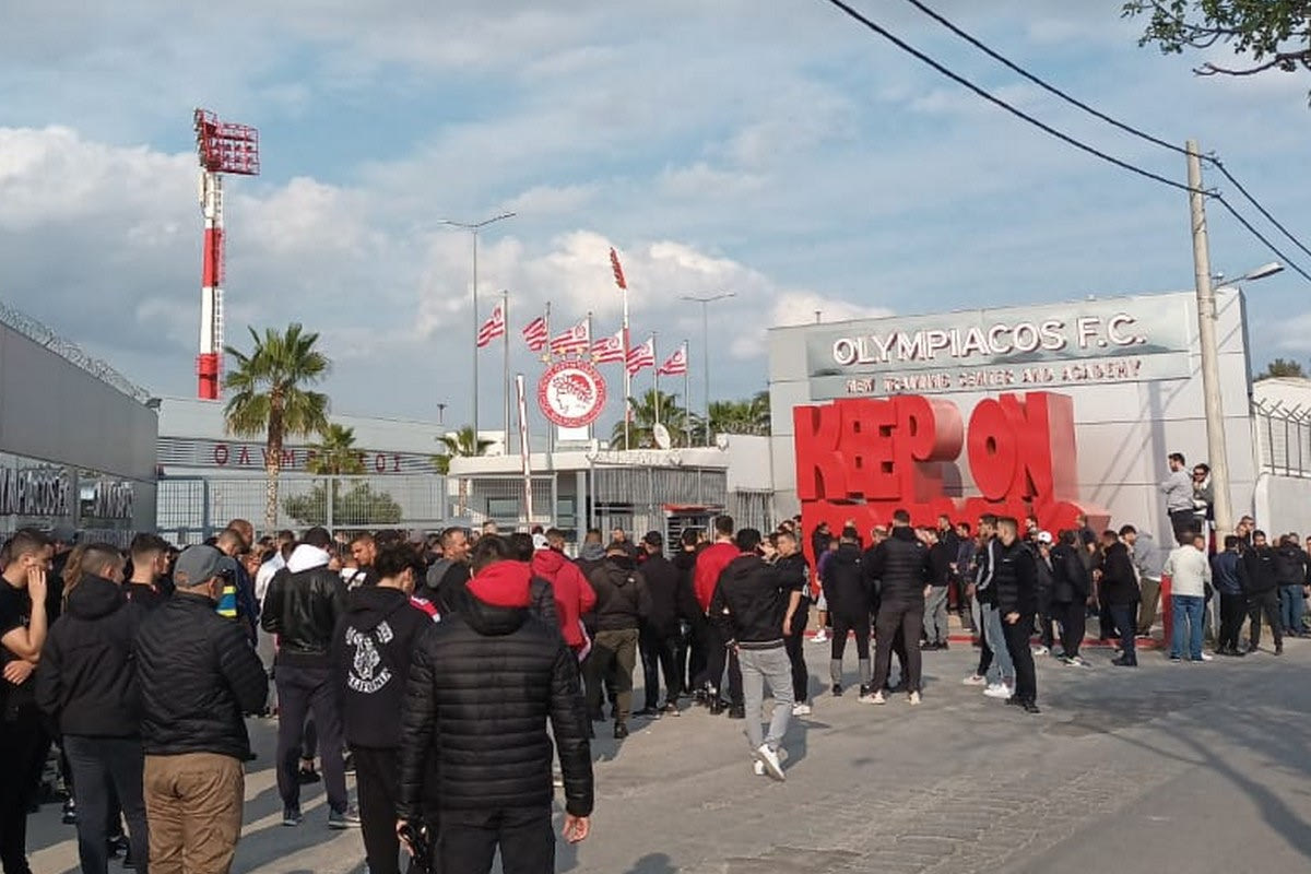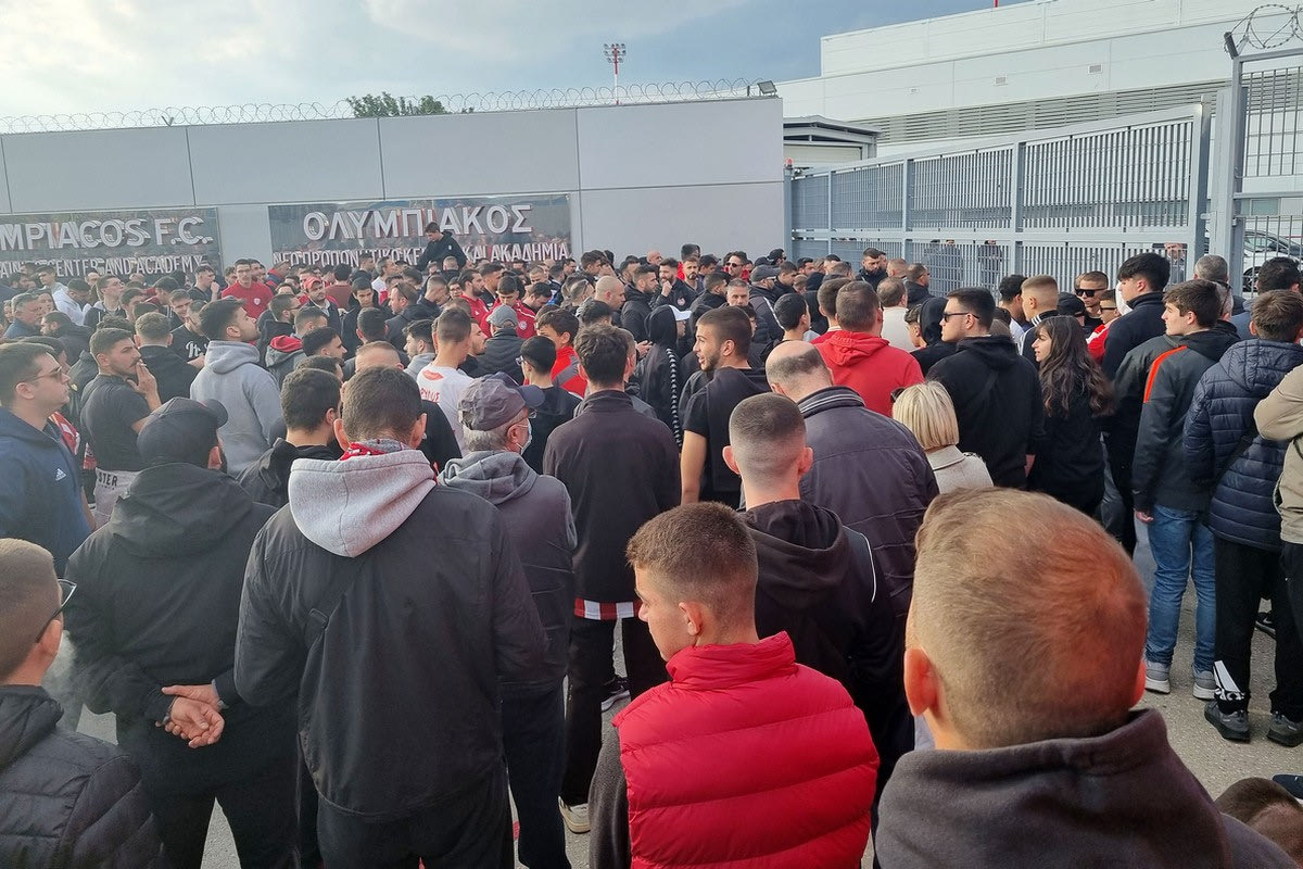 Μετά από τις 17.00 ο κόσμος άρχισε να μαζεύεται έξω από τις εγκαταστάσεις του συλλόγου του Πειραιά και όπως έχει γίνει γνωστό θα ακολουθήσουν μέχρι ένα σημείο την αποστολή με πομπή από μηχανάκια.