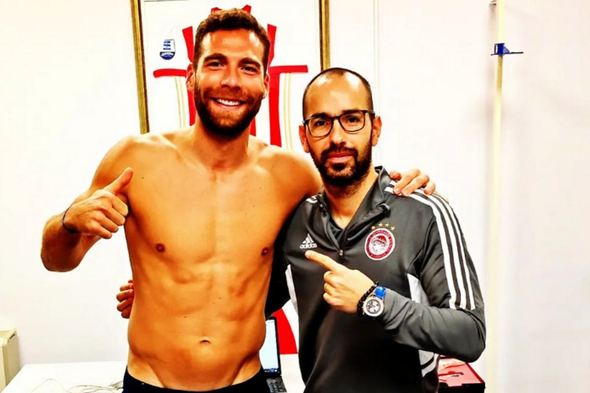 Ο διατροφολόγος του Ολυμπιακού, Ερνάνι Γκόμες, ανέβασε φωτογραφία στο Instagram μαζί με τον μέσο των ερυθρόλευκων, ο οποίος ποζάρει με τους κοιλιακούς του. “-6 κιλά” έγραψε ο Γκόμες.
