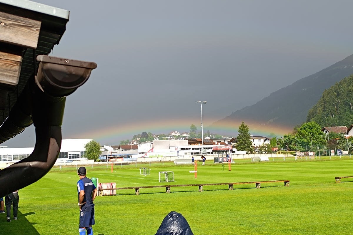 Η βροχή δεν κράτησε πολύ και έτσι οι παίκτες παρέμειναν κάτω από υπόστεγο για λίγο για ασκήσεις. Όταν σταμάτησε βγήκαν στον αγωνιστικό χώρο και ήρθε η ώρα να πάρουν μπάλα στα πόδια τους.