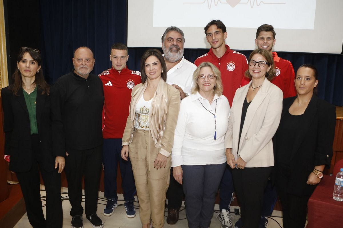 Αντιπροσωπεία της ΠΑΕ Ολυμπιακός, αποτελούμενη από τους Σταύρο Πνευμονίδη, Νικόλα Μπότη και Ισίδωρο Κουτσίδη, αλλά και την υπεύθυνη Δημοσίων Σχέσεων και Εταιρικής Κοινωνικής Ευθύνης, κα. Ντέπη Κοξένογλου, βρέθηκε στην Ελληνογαλλική Σχολή Jeanne d’Arc στο πλαίσιο της Παγκόσμιας Ημέρας Καρδιάς.