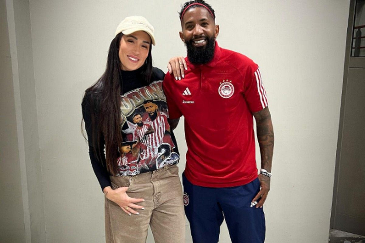 Το ερωτευμένο ζευγάρι πόζαρε μαζί, φορώντας τα ερυθρόλευκα και ανήρτησαν την φωτογραφία τους στα social media.