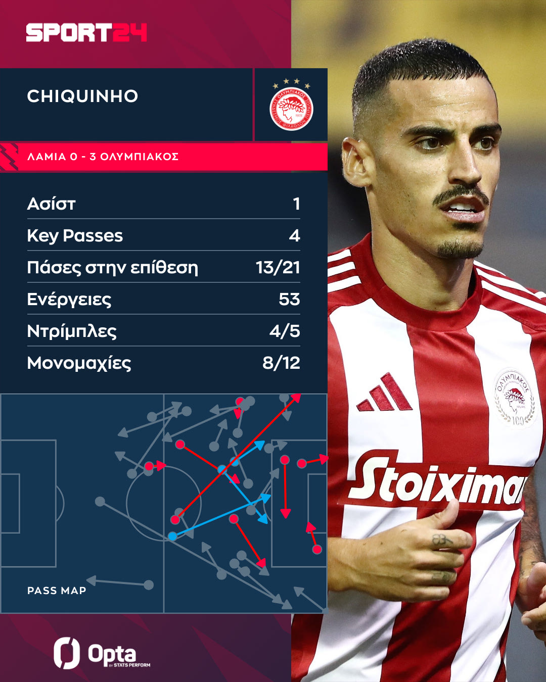 Στο γράφημα μπορείτε να δείτε όλες του τις ενέργειες και τις κορυφαίες του επιδόσεις απέναντι στη Λαμία.