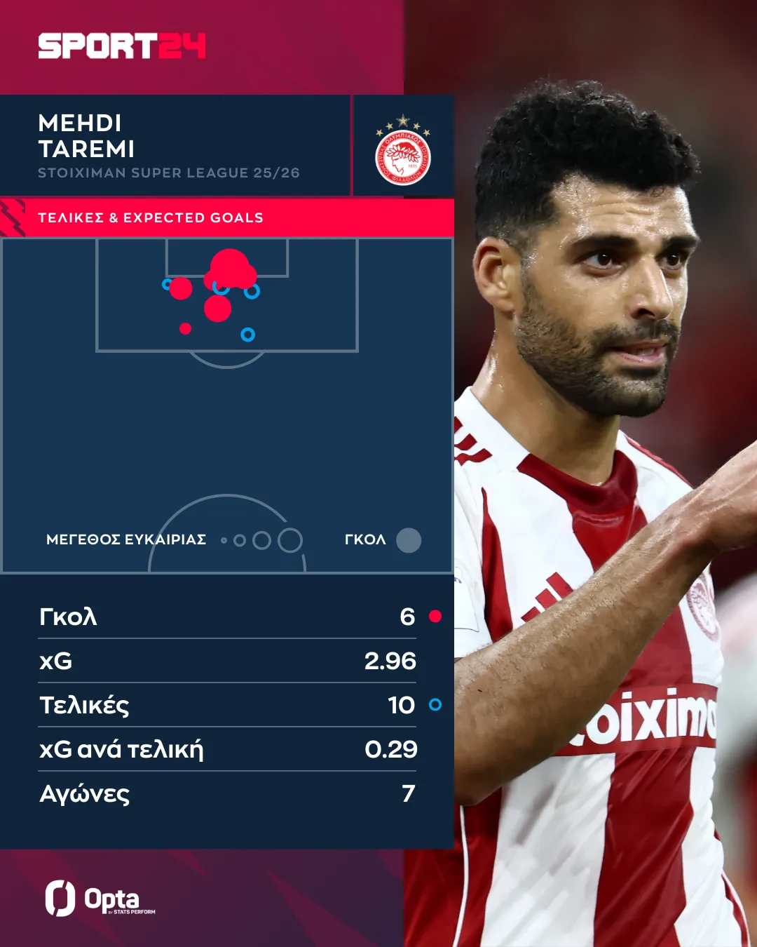 Ολυμπιακός: To instict του Ταρέμι τρομάζει, το εξωφρενικό shot map του Ιρανού φορ