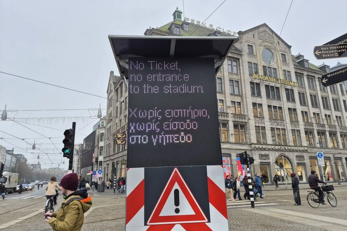 Στην Ολλανδία έχουν ταξιδέψει πολλοί φίλοι των ερυθρολεύκων που δεν έχουν εισιτήριο. Σε αυτούς υπάρχει σύσταση από την ερυθρόλευκη ΠΑΕ και όχι μόνο να μην πλησιάσουν από τη Γιόχαν Κρόιφ Αρένα. Σχετικές συστάσεις γίνονται και στο κέντρο του Άμστερνταμ, καθώς υπάρχουν μηνύματα ακόμα και στα ελληνικά σε ειδικά matrix. “Χωρίς εισιτήριο, καμία είσοδος στο γήπεδο” (προφανώς δεν έγινε πιστή μετάφραση).