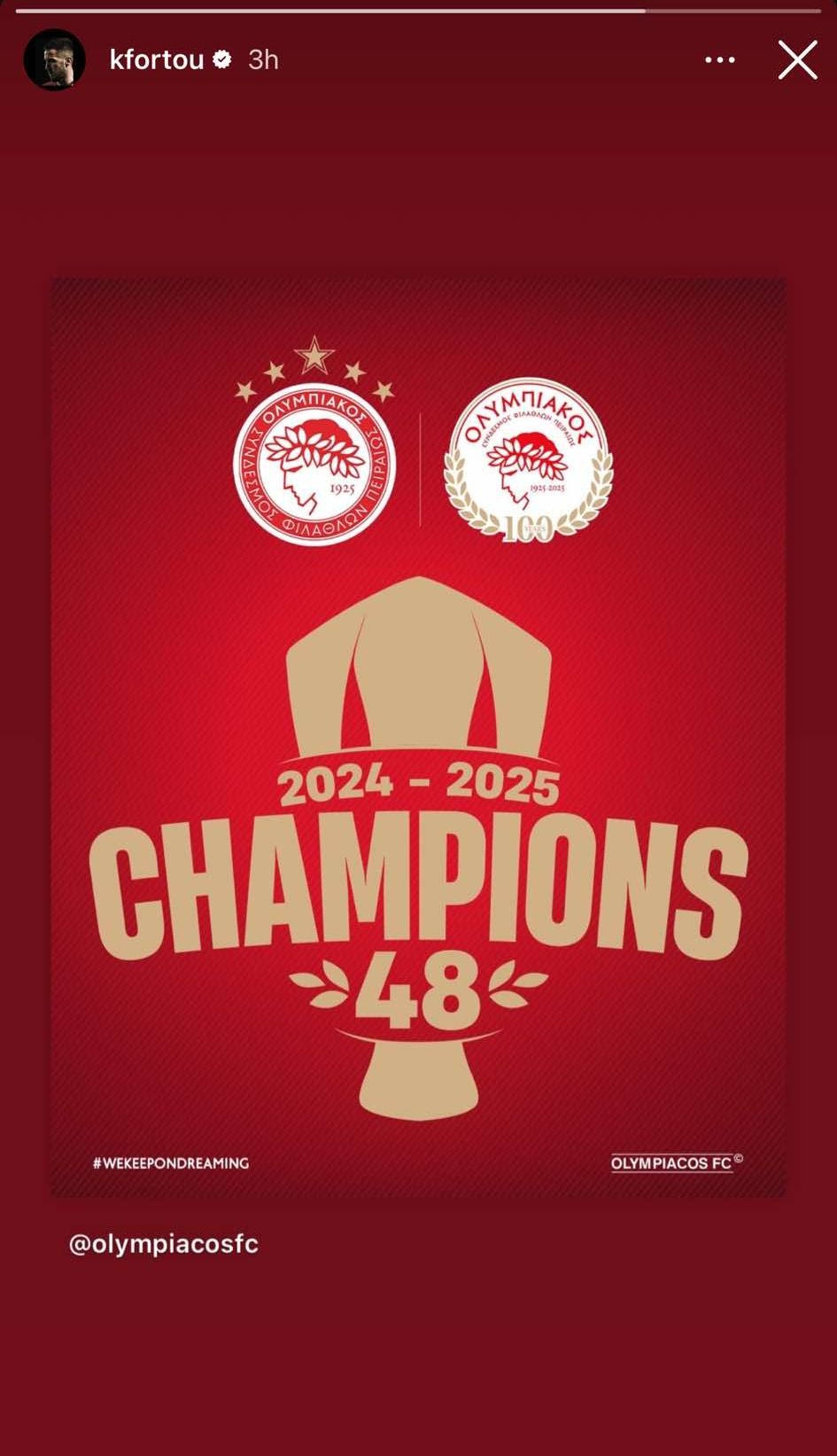 Ολυμπιακός: Το ποστάρισμα του Φορτούνη για το 48ο πρωτάθλημα των ερυθρολεύκων