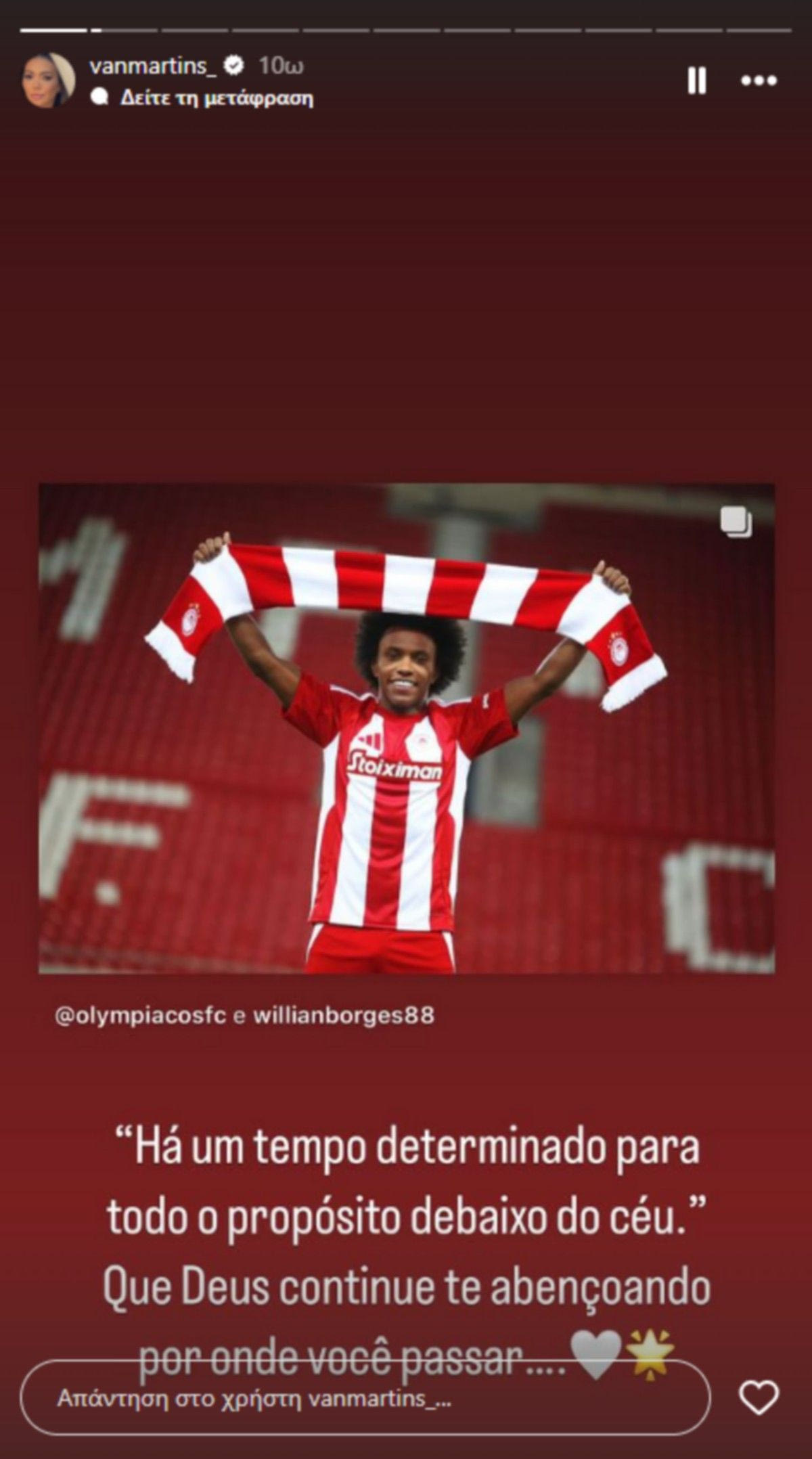 Οι πρώτες ερυθρόλευκες αναρτήσεις της συζύγου του Γουίλιαν. Η Βανέσα δείχνει έμπρακτα τη στήριξή της στον Βραζιλιάνο μετά την απόκτησή του από τον Ολυμπιακό.