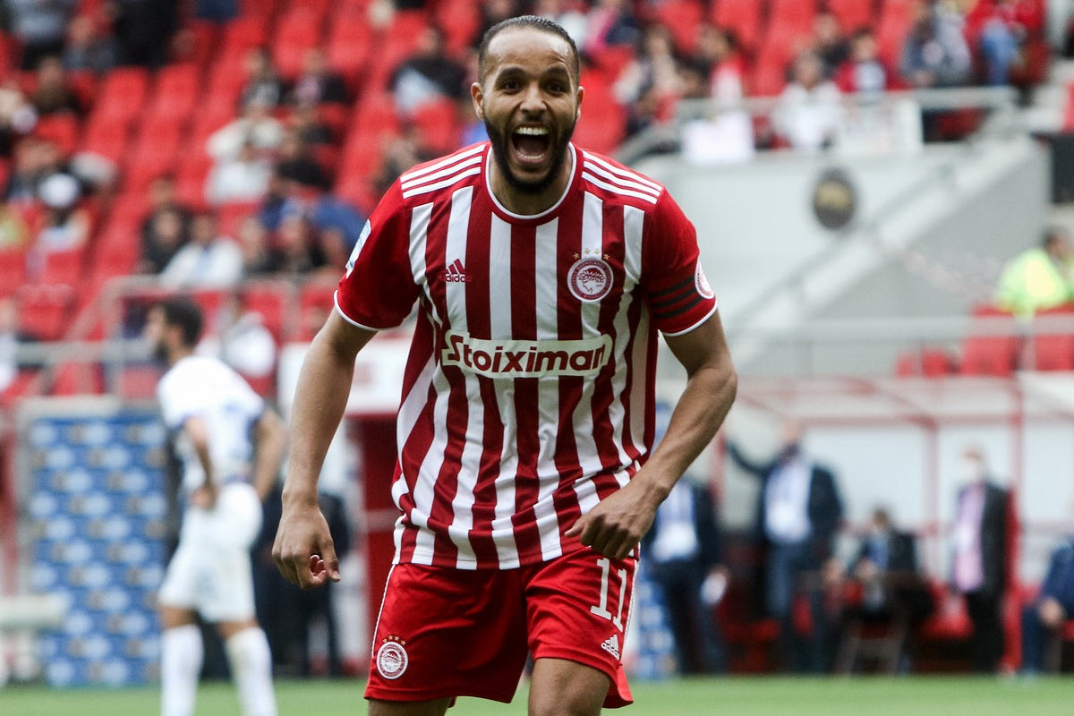 Ο Γιουσέφ Ελ Αραμπί πανηγυρίζει γκολ του στο Ολυμπιακός - ΠΑΣ Γιάννινα