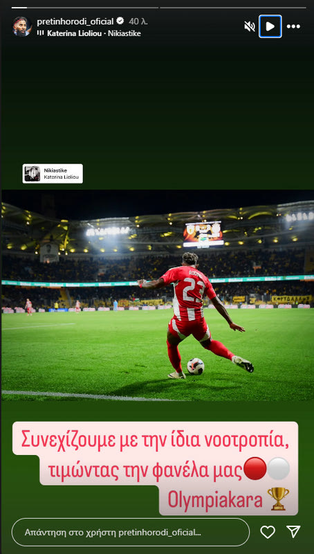 Ολυμπιακός: Το story του Ροντινέι με Κατερίνα Λιόλιου μετά τη νέα νίκη επί της ΑΕΚ