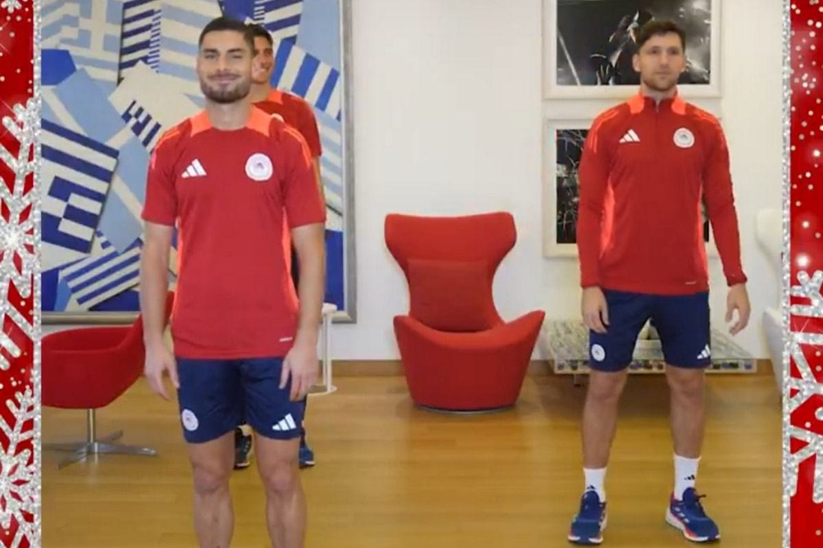 Στο φινάλε του παιχνιδιού, οι ποδοσφαιριστές του Ολυμπιακού έστειλαν τις ευχές τους στον κόσμο για Καλές Γιορτές.