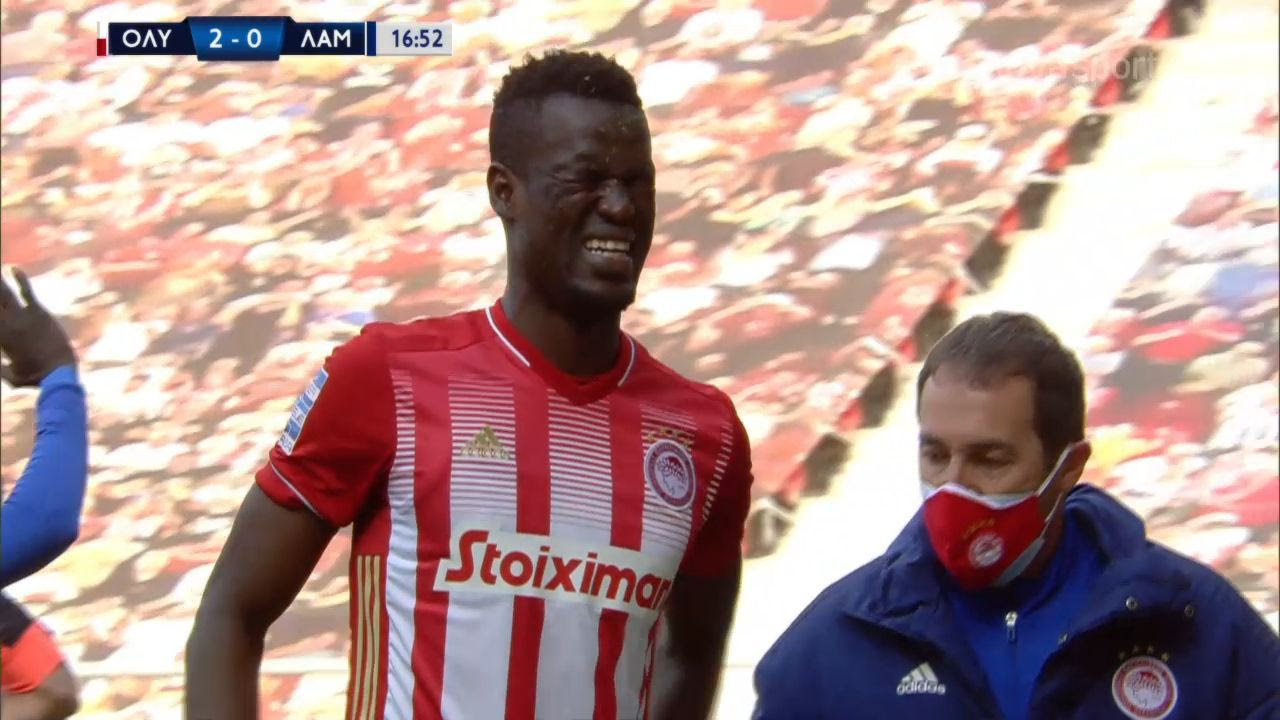 Ο Ουσεϊνού Μπα τραυματίστηκε στη μέση κατά τη διάρκεια του αγώνα του Ολυμπιακού με τη Λαμία, έγινε αναγκαστική αλλαγή και υπάρχει αγωνία στους ερυθρόλευκους ενόψει Άρσεναλ.