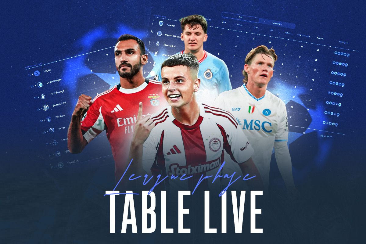 Ο Ολυμπιακός μάχεται για να συνεχίσει στα playoffs του Champions League. Δείτε την κατάταξη των ερυθρόλευκων LIVE στην τελευταία αγωνιστική της League Phase.