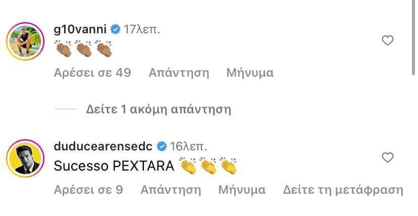 Ο Ζιοβάνι και ο Ντουντού αποθέωσαν τη μεταγραφή του Γκουστάβο Σκάρπα κάτω από την ανάρτηση της ανακοίνωσης.