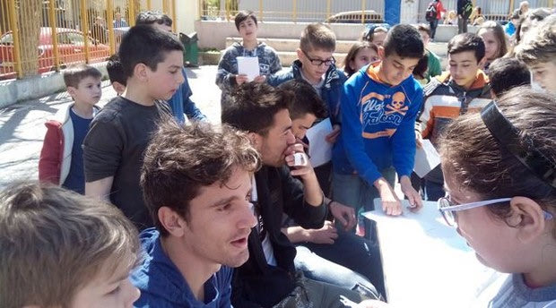 “Μια όμορφη πασχαλινή αγκαλιά από τους μαθητές και τις μαθήτριες του 30δημοτικού Περιστερίου περίμενε την αντιπροσωπεία της ομάδας μας που αμέσως μετά το τέλος της σημερινής προπόνησης βρέθηκε στο σχολείο.