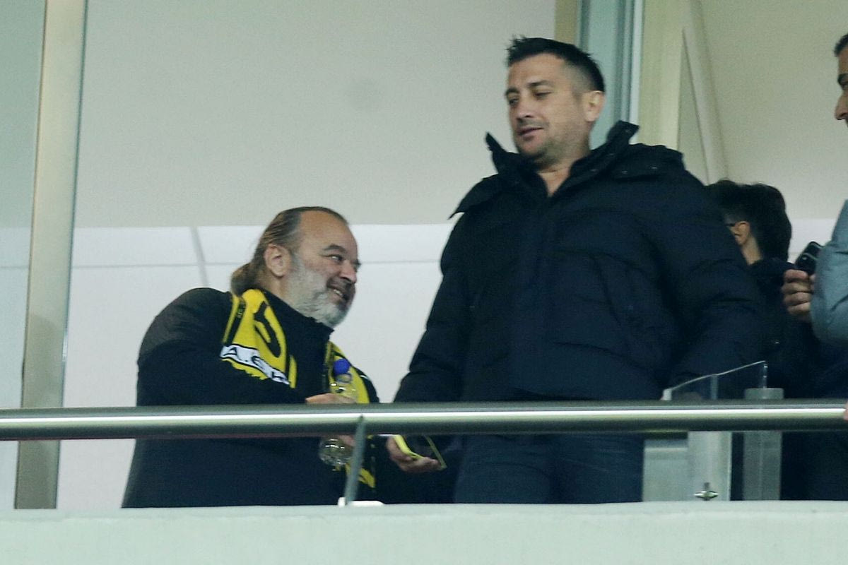 Ο ιδιοκτήτης της ΑΕΚ, Μάριος Ηλιόπουλος, βρέθηκε στις εξέδρες του Γεώργιος Καραϊσκάκης για να δει από κοντά το ματς.