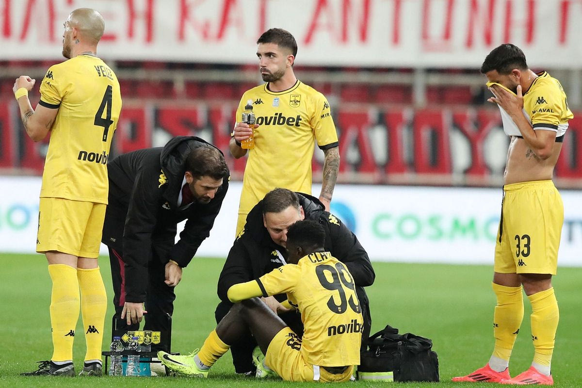 Ο Ντιαντί στον χορτάρι του "Γ. Καραϊσκάκης" λίγο πριν περάσει εκτός αγωνιστού χώρου με αναγκαστική αλλαγή