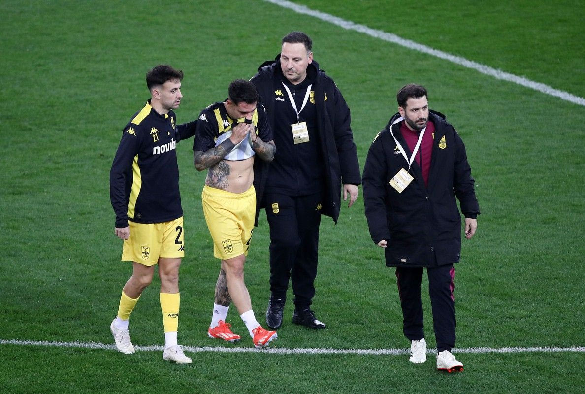 Ένα απρόοπτο λίγα λεπτά πριν την έναρξη του αγώνα με τον Ολυμπιακό στο “Γ. Καραϊσκάκης” έχει να αντιμετωπίσει ο Μαρίνος Ουζουνίδης, καθώς είδε τον Ούγκο Μάγιο να αντιμετωπίζει πρόβλημα τραυματισμού στην προθέρμανση.