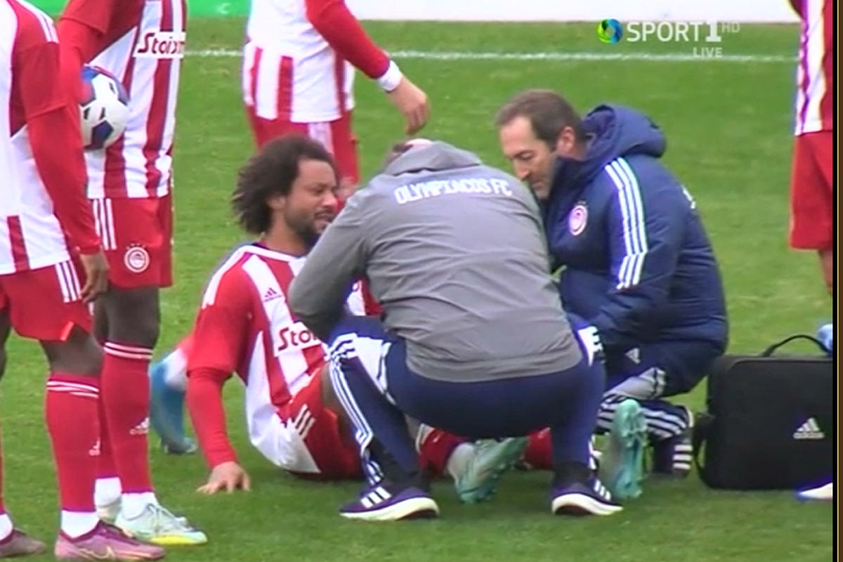 Μέχρι το 59ο λεπτό της αναμέτρησης ανάμεσα στον Ολυμπιακό και τη Χάντερσφιλντ αγωνίστηκε ο Μαρσέλο. Ο κινητικός Βραζιλιάνος χαφ δέχθηκε ένα δυνατό μαρκάρισμα από τον Αγινά και έπεσε στο έδαφος.