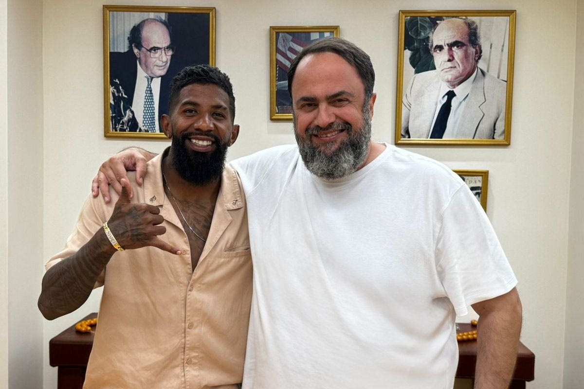 Μάλιστα, ο Βραζιλιάνος μπακ φωνογραφήθηκε με τον ιδιοκτήτη της ΠΑΕ, Βαγγέλη Μαρινάκη, μετά την ανανέωση του συμβολαίου του.