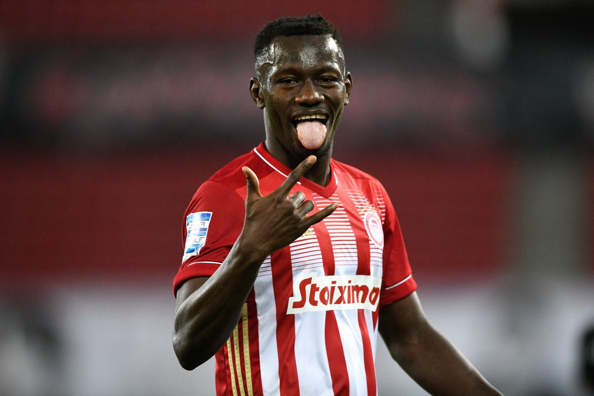 Ο Μαντί Καμαρά πανηγυρίζει με τη φανέλα του Ολυμπιακού Eurokinissi Sports