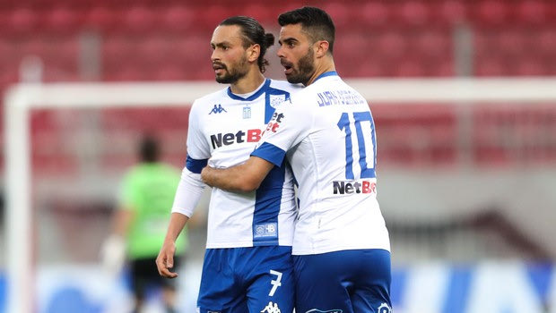 Ο Καρτάλης πανηγυρίζει το γκολ επί του Ολυμπιακού/28-4-2021
